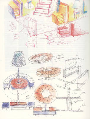 Ogni comodino è contrassegnato dal nome di un illustratore. Su ogni comodino c'è una lampada e un bicchiere personalizzato. Insomma, un po’ come nella camerata di un collegio, ma più bello. Bene. Ma dove sono le illustrazioni?